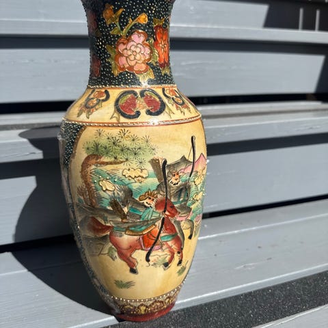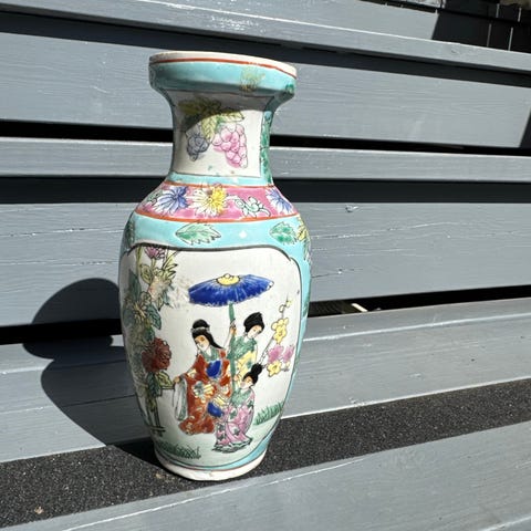 Vintage, selges billig pga en nesten usynlig sprekk, så kan kun brukes som dekor med kunstige blomster. Men nydelig malt mønster. Kan hentes sentralt i Oslo etter avtale.har flere annonser.