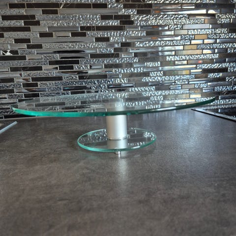 Stilren og dekorativ lysestake i metall. Den står stødig og har filt under foten som beskytter underlaget mot riper (se bilde). Har ikke vært brukt med lys, kun lagret, og fremstår pen og hel.