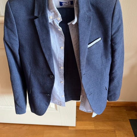 Dress fra cubus, lite og pent brukt.(farge navy) Skjorte i lys blå fra kapphal medfølger om ønskelig. Alt str 152