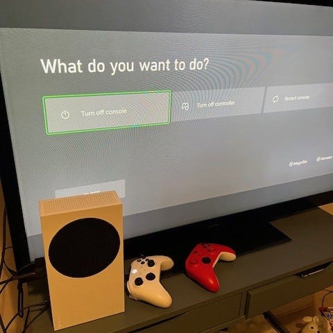 Microsoft Xbox Series S spillkonsoll i hvit farge. Kompakt design med ventilasjon på toppen. Inkluderer to trådløse kontrollere, en i hvit og en i svart. Konsollen støtter neste generasjons spillopplevelser og har digital nedlastingskapasitet. MÅ HENTES. Tar imot bud men bare om du kan hente samme dag.