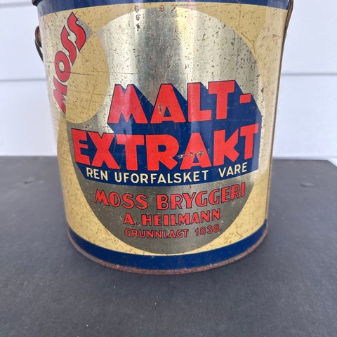 Selger en gammel boks fra Moss Bryggerier malt ekstrakt i meget god tilstand