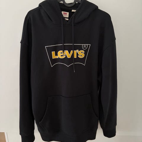Levi's S rød hettejakke i bomull for herre. Jakken har glidelås foran, to lommer og hette med snøring. Passer til daglig bruk og gir komfort og varme.
