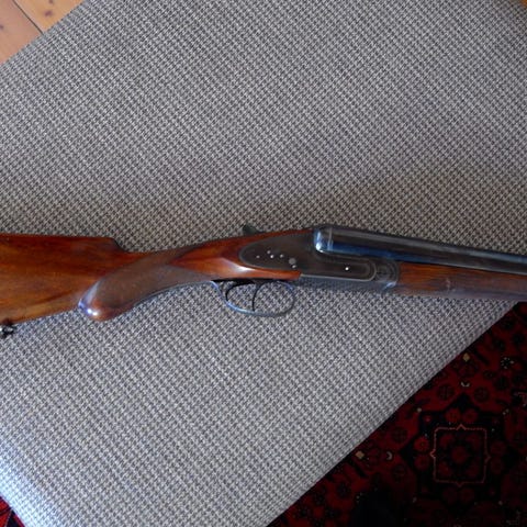 Merkel Model 200 i kaliber 12/70 er en klassisk OU produsert i Suhl, med solide Böhler Stahl-løp som er weichlot-loddet og korrekt merket med nitroproof. Våpenet har den karakteristiske Merkel-konstruksjonen med boxlock-mekanisme, dobbelt avtrekk og automatisk toppsikring. Låskassen har original gravyre, og treverket viser normal og jevn aldersslitasje uten å være skadet. Våpenet er stramt i lås, har rene løp og fungerer mekanisk slik en god Merkel skal. Dette er en robust og velbalansert hagle som passer både til praktisk jakt og som et godt tilskudd i en samling. Serienummeret er 54521, og våpenet fremstår som et solid og pålitelig bruksvåpen med klassisk tysk kvalitet.
