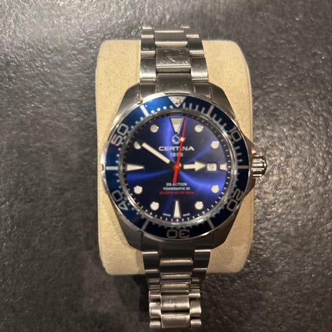 Som ny Tissot seastar 1000 selges. Klokken er 42 mm og kommer med det velkjente automatiske urverket eta 2824-2. Vanntett opptil 300 meter og med skrudd krone. Kommer med komplett sett med boks og papirer.