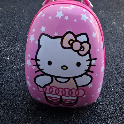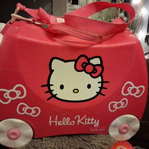 Hello Kitty trillekoffert til å sitte på.