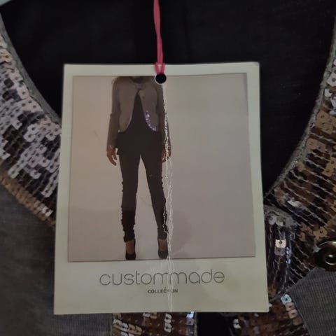 paljetter jakke i sølvfarge, størrelse M for kvinner. Jakken er dekorert med paljetter og har et glatt innerfôr. Egnet som ytterplagg eller til festlige anledninger.