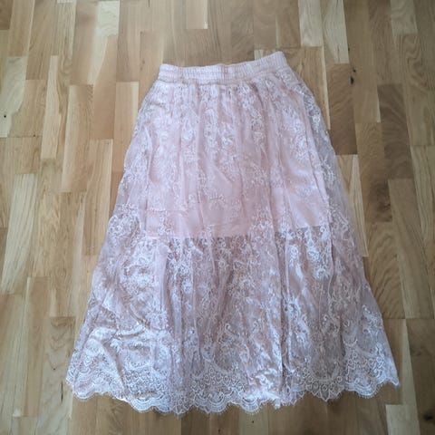 Bik Bok skjørt i størrelse S. Sort grunnfarge med blomstermønster. Skjørtet har glidelås i siden og knyting i livet. Fôret går halvveis ned. Skjørtelengde ca 90 cm.