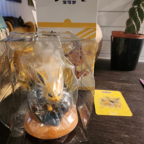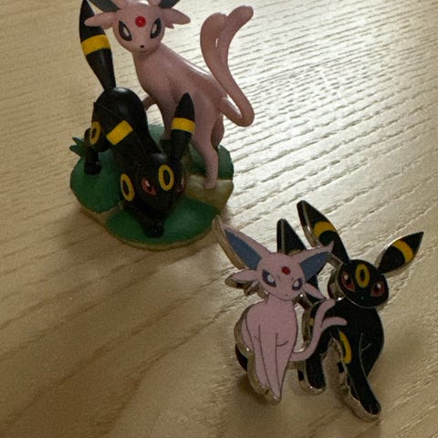 Datteren min fikk 2 stk av Espeon, men hun har alt denne i samlingen sin. Selger derfor disse, har solgt en, så har 1 igjen for salg. Kan eventuelt bytte mot Umbreon, Sylveon, Vaporeon eller Eevee.