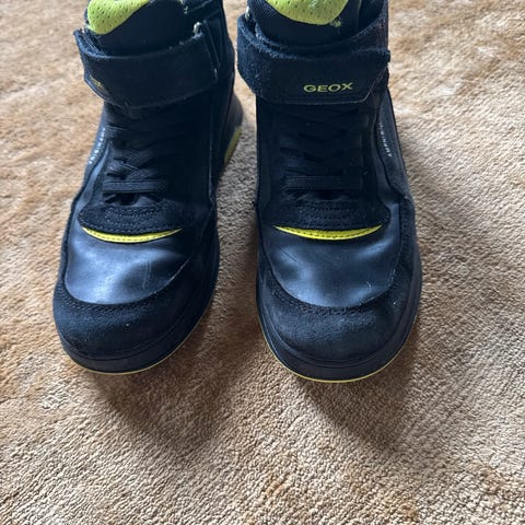 Geox barn sko i størrelse 38, designet for gutter. Skoene er laget i svart lær og har snøring. Egnet for formelle eller hverdagslige anledninger hvor en klassisk sko er ønskelig. Veldig gode på foten. Brukt noen fåtall ganger.