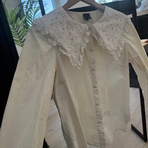 Denne fantastiske skjorten er enkel å style opp og ned, avhengig av anledningen, men vil definitivt gi deg et feminint preg. Gå for baggy jeans og høye hæler når du styler – det vil gi deg en avslappet og elegant look. - Produkttype : Skjorte - Hals : Skjortekrage - Erme : Lange ermer - Ermer : Lave skuldre - Lukking : Knappelukking foran - Lengde/størrelse : Normal lengde - Detaljer : Rysjer - Passform : Loose fit