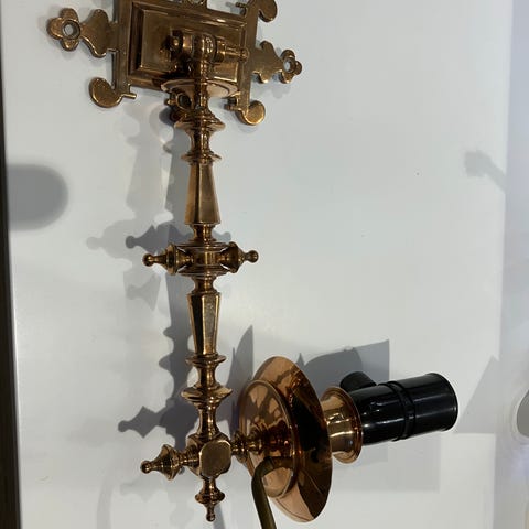 Vakker, dekorativ lysestake laget av messing med håndlagde porselensblomster. Unikt og sjeldent vintage-stykke som gir et romantisk og klassisk uttrykk.
