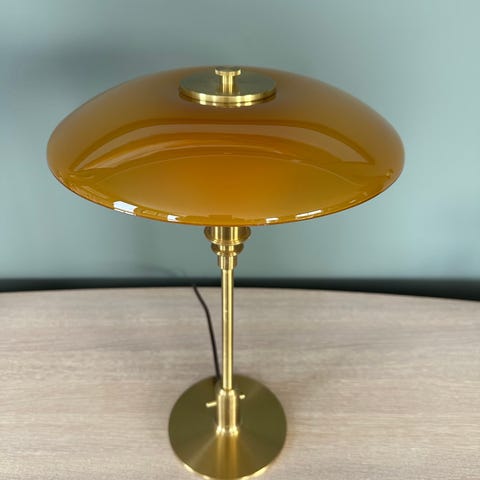 Dette er en sjelden og ettertraktet lampe, spesielt i grønt luseglass. Perfekt for deg som samler, eller som ønsker et unikt blikkfang i interiøret.