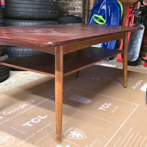 Retro, kvadratisk bord i teak. Fint som sofabord, sidebord eller hjørnebord. I god tilstand.