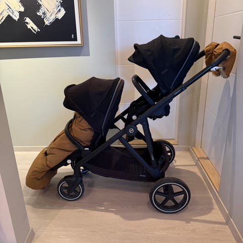 Selger vår pent brukte tvillingvogn Bugaboo Donkey 3 Duo, i fargen sort med sort kalasje. Vi har vært svært fornøyde med vognen men nå har barna vokst ut av den og den blir ikke brukt lenger.