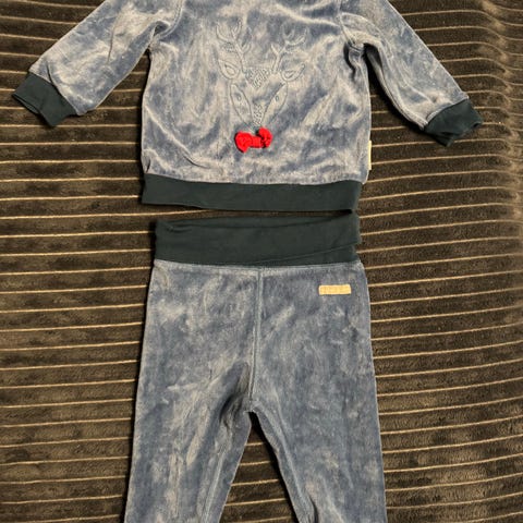 Myk joggedress/sett i mørkeblå velur med stjerner. Fransk merke Careement Beau str 74. Ikke synlig brukt 🥰