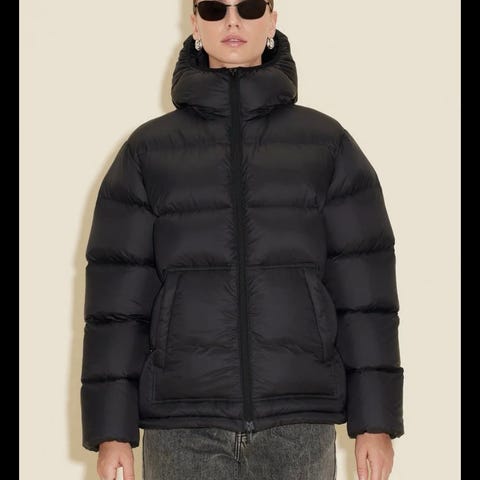 Superfin ganni boblejakke med dun! Kan snurpes i livet. Et lite hull samt en svak flekk bak på skulderen. En perfekt afterski jakke som man ikke trenger være redd for!