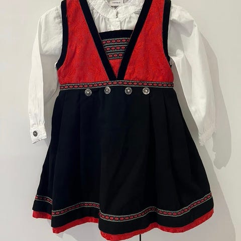 Barnekjole fra Snøhvit. Størrelse fra hals til kjoleende: 33 cm. Bredde målt i midjen: 29 cm