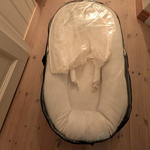 Avent Babycall. Kjøpt i 2019. Delen som er med barnet har lys, musikk og drives av vanlige batterier om den ikke er koblet til strøm. Den andre delen har oppladbart batteri og toveiskommunikasjon. Hvit og lyseblå.