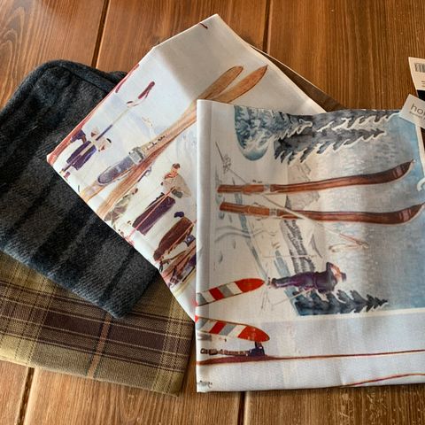Kule håndklær med skimotiv selges kr 125,-/stk