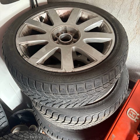 Pent brukte piggdekk til salgs. De ble kjøpt i sommer og har bare blitt brukt på vei i en og en halv måned. De har vært lagret tørt og godt i de månedene de ikke har vært i bruk. Felgene er eldre og føller med. Selges på grunn av bytte av bil. Kan kjøre hjem mot betaling