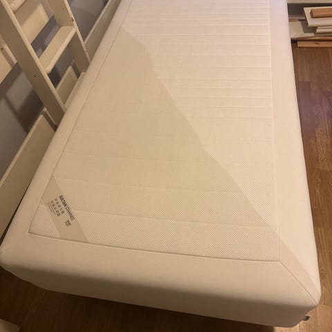 Selger 2 SULTAN rammemadrasser fra IKEA på 80cm per stk. Egne fester til å sette dem sammen til en 160cm seng følger med. 8 BURFJORD ben i tre på 20cm følger med.