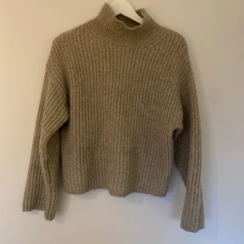 & Other Stories genser i offwhite ull, størrelse XS. Genseren har ribbestrikket design og høy hals. Laget av 100% ull.
