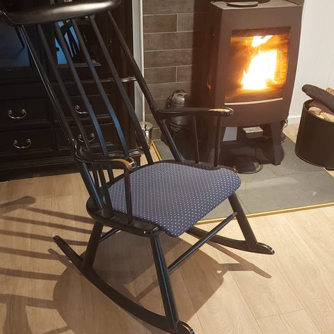 Gammel gyngestol nylig restaurert. Veldig god sittekomfort og oppgradert setepute. Treverk pusset og oljet.