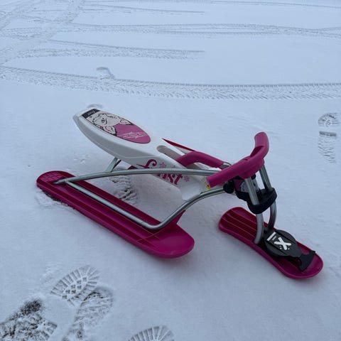 En lite brukt SnowRacer i fargen rød selges da den ikke blir brukt med oss. Den er noe falmet i plasten, men dette fikser man raskt med en lighter eller gassbrenner. Men det har ingenting å si for bruken sin del.