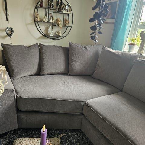 Selger vår Imoia hjørnesofa / sjeselong i grå farge. den ultimate momse-sofaen for late søndager, filmkvelder og middagslurer!