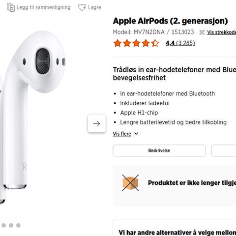 Vi ser for tiden at antall falske Apple AirPods i omløp øker. Vi oppfordrer derfor alle brukere til å sjekke at varen er ekte merkevare, før man kjøper den. Les mer