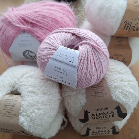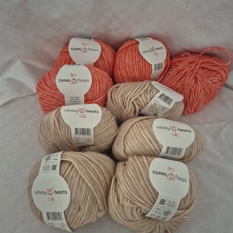 10 nøster av lily garn70% bomull og 30% merino ull, pinner og hekle nål 4.5