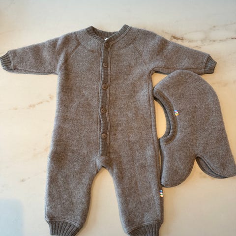 Selger en liten ullpakke bestående av ulldress og lue. Ulldressen er godt brukt men kan ikke finne hull. Fremstår litt misfarger i kragen. Ikke vasket av meg da jeg ønsker unngå unødvendig vask av ull.