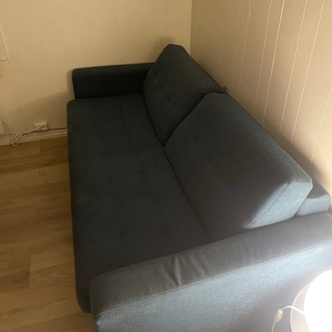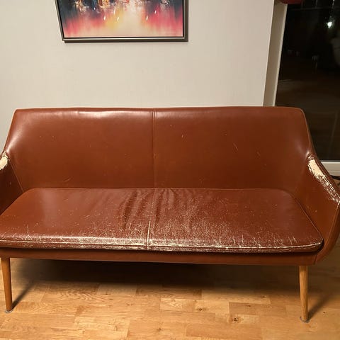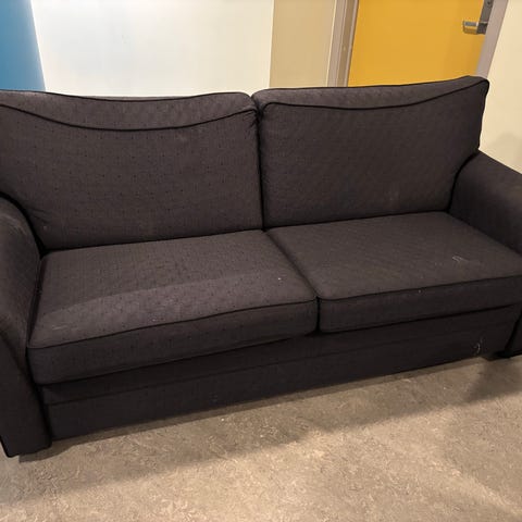 Ellers er sofaen ypperlig i f.eks. arbeidsbrakke, kjellerstue (med teppe over) etc.