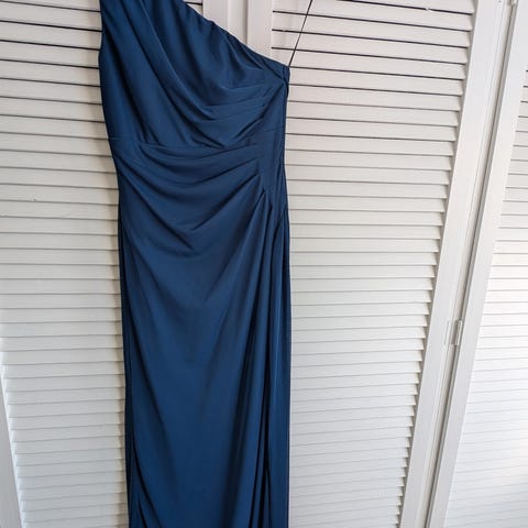 Nydelig selskapskjole i dus blåfarge.