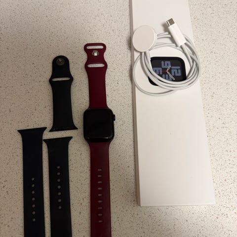 Apple Watch Series 9 41 mm smartklokke, leveres med lader. Passer for brukere som ønsker en smartklokke med helse- og aktivitetsfunksjoner. Klokken funker helt fint, selges grunnet overgang til garmin. Ble kjøpt i august 2024. Eneste som må byttes er reimen. Er noen bruksmerker som kan ses når skjermen er av. Kan følge med kvittering og pris kan diskuteres 😛