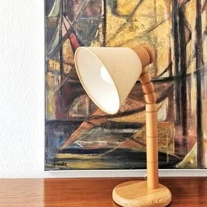Klassisk mid-century modern (MCM) trekkspillampe med justerbar saksearm og konisk metallskjerm. Et tidstypisk og funksjonelt design som gjør den perfekt som lese-, arbeids- eller dekorlampe. Trolig produsert på 1960–70-tallet.