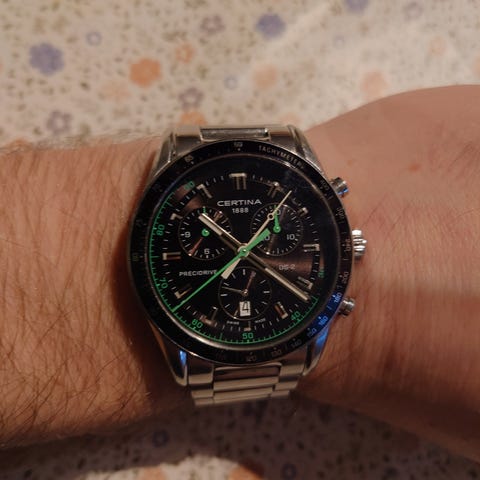 Uten original eske, uten originale dokumenter, men har hatt den på service hos urmaker grøtteland. Og kan fremskaffe ektehetsbevis fra dem om det er ønskelig.