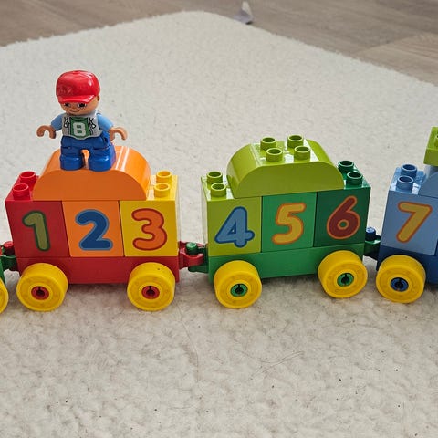 Dolu barnejernbanesett er et 36-delers byggelekesett med et tog.
