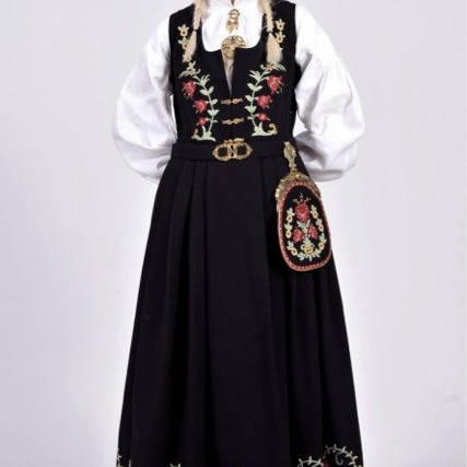 Bunadsskjorte, mansjettknappene og skinnbelte følger med.