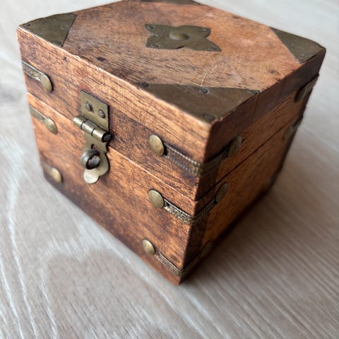 Mynteske i tre med plass til 12 mynter. Kassen har en mørk finish og en polstret innside for å beskytte mynter. Passer til oppbevaring og transport av mynter.