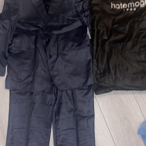 Bertoni dress, jakke og bukse, svart med litt stripete mønster, pent brukt. Str L - 500kr