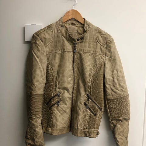 GUESS Andre jakker i skinn, størrelse M, i blå farge. Jakken har glidelås foran og er designet for kvinner. Materialet er skinn med fôret innside.