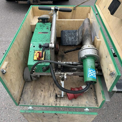 Herz Roofon Multi Bitumen Analog komplett pakkeløsning for bitumenbasert takbelegg. Inkluderer 2 ekstra vektlodd på 2,1 kg, robust transportkasse i metall og messingbørste for vedlikehold. Kompakt og allsidig enhet for sveising av bitumen/sbs/app på overflater, takstiger, takskjegg og kantområder. Manuell justering av temperatur og driftshastighet med anbefalt driftshastighet 1,8–2,1 m/min. Trinnløst regulerbart luftvolum og sammenleggbart ledet styrestang med justerbar lengde. Effekt på 3400W, egnet for både raske og tregere 16A sikringer, for arealer fra 20 og opp mot 1200 kvm. Temperaturområde 0–620 °C, frekvens 230/60 Hz.