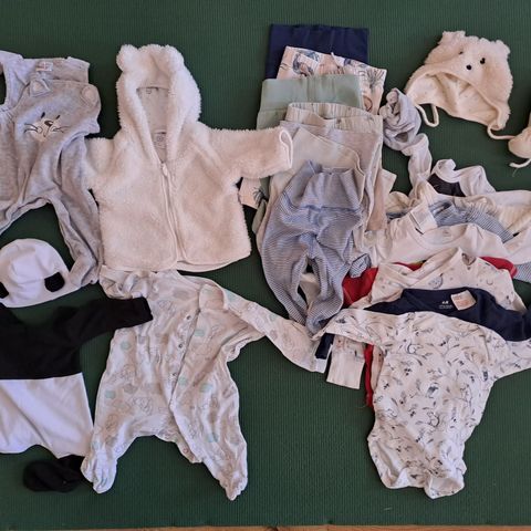 Selger klespakke str 50. Masse sokker, noen pysj, body, luer, bukser , tøfler og en strømpebukse.