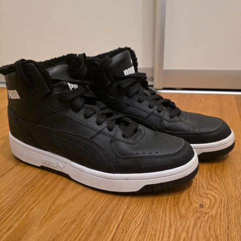 Puma Sneakers joggesko i størrelse 44. Skoene er hvite med sorte detaljer og har snøring. Egnet for daglig bruk og fritidsaktiviteter, pent brukt så selges billig