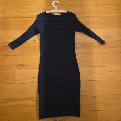 WoolLand hverdagskjole i størrelse M for kvinner. Kjolen er laget av ull og har blå farge. Skal sitte over hoftene og livet poser litt over