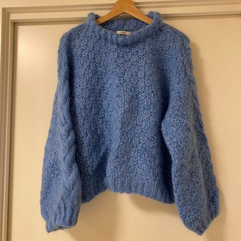Lys blå ullgenser med 29% alpaca fra & Other stories. Passer både M og L