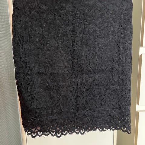 Pent brukt skjørt og topp i svarte blonder. Selges samlet
