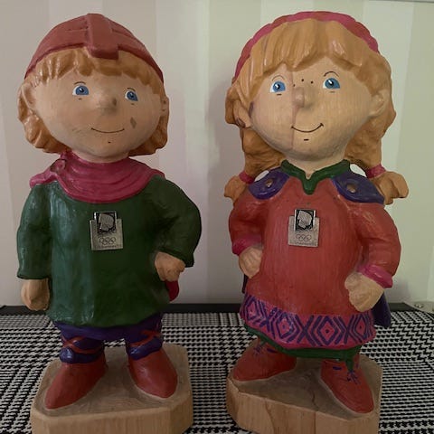 Selger et unikt sett med vintage Rolf Berg Påskekone-figurer i håndlaget keramikk – en stor på 114 cm og en liten på 110 cm.