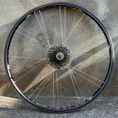 Bakhjul: Ser ut skjevt ca 2 mm. Tidligere på bakhjulet stod 8 Speed Kassett
